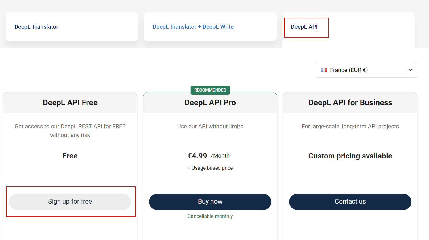 The bot uses the DeepL translation engine. The first step is to create a free account on DeepL website: