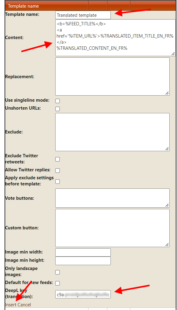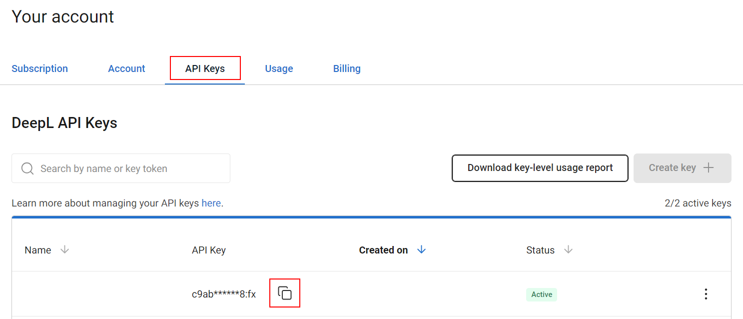 In the "DeepL key (translation)" textbox, paste the key you previously copied from your DeepL account.