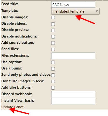 Finally, you have to configure your feed to use this template.