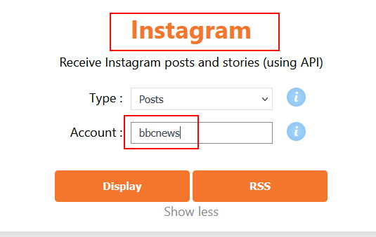 Premium and Elite subscribers can receive posts from Instagram accounts. To create an Instagram feed, open the Bridge2 website: