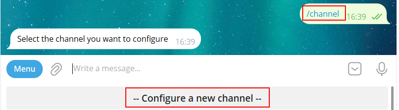 2. In the Premium or Elite bot, type /channel and select "Configure a new channel". Select your channel: